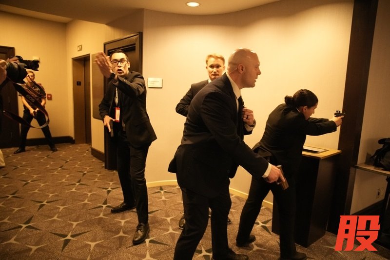 动静一传来,特勤局应该就启动了标准的政要撤离程序。从相关视频中可以看到,有人拿着纸条走到台上给特朗普和第一夫人看,然后就开始分批进行撤离。在撤离过程中,场面一度比较乱。从现有的视频来看,特朗普没有受伤,但好像踉跄了一下,可能在地上还摔了一下,看上去腿有点软。根据路透社的报道,枪手是在酒店的检查点附近向一名特勤人员开枪,不过由于该特勤人员穿着防弹背心,并未受重伤,随后警方将嫌疑人制服并拘捕。